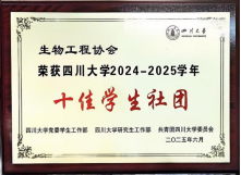 生物工程协会荣获四川大学2024-2025学年“十佳学生社团”称号