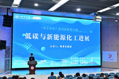 为响应国家“双碳”战略与科技创新号召,引导青年学子深刻认识化工行业绿色发展与新能源、新材料领域的广阔前景,2025年10月31日下午,我校“锦水论坛”第74期“低碳与新能源化工进展”主题讲座在江安校区第一教学楼水上报告厅如期举行。化学工程学院院长郭孝东教授受邀作为主讲嘉宾,面向来自10个学院的近400名学生进行授课和交流互动。围绕党的二十大报告擘画的蓝图,郭孝东教授深入浅出地讲解了化工学科服务“双碳”与新能源战略的现实路径,帮助同学们理解了自身专业在时代发展中的巨大机遇。