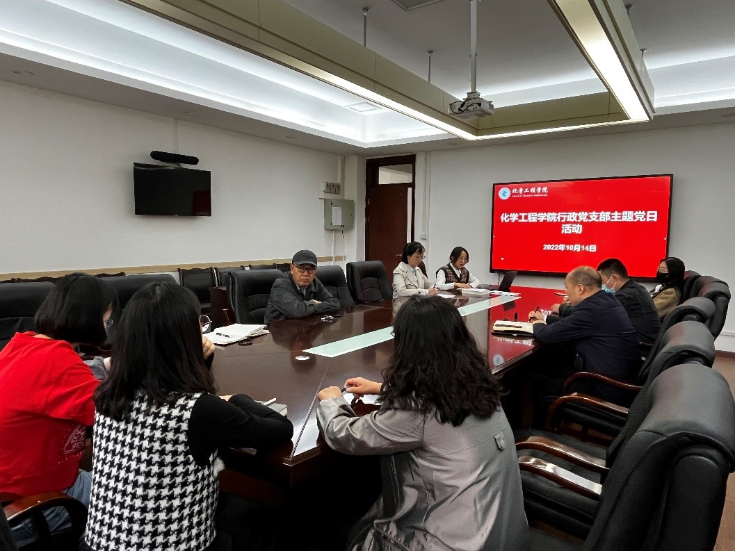 2022年10月14日下午,学院全体行政、教辅教职工在望江校区化工学院235会议室组织开展政治学习并召开支部党员会议,全体行政人员、教辅人员参加了此次学习。本次会议由高敏同志主持。