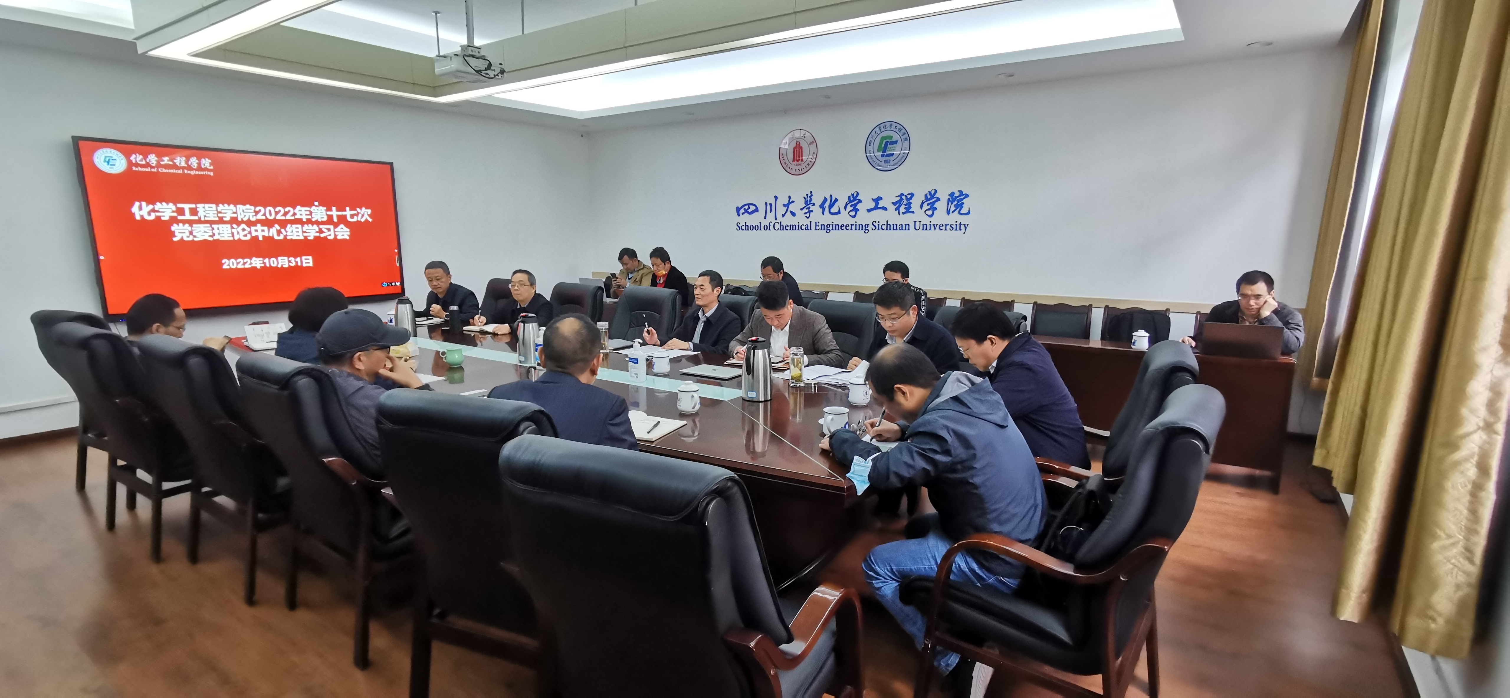 10月31日上午,化学工程学院党委理论学习中心组在望江校区化工楼235会议室组织召开了党的二十大精神专题学习会。学院全体领导班子成员、党委委员、纪委委员、工会主席、专职组织员、系(基地、中心)主任、院长助理和科级干部等参加会议,会议由赵长生院长主持主讲。