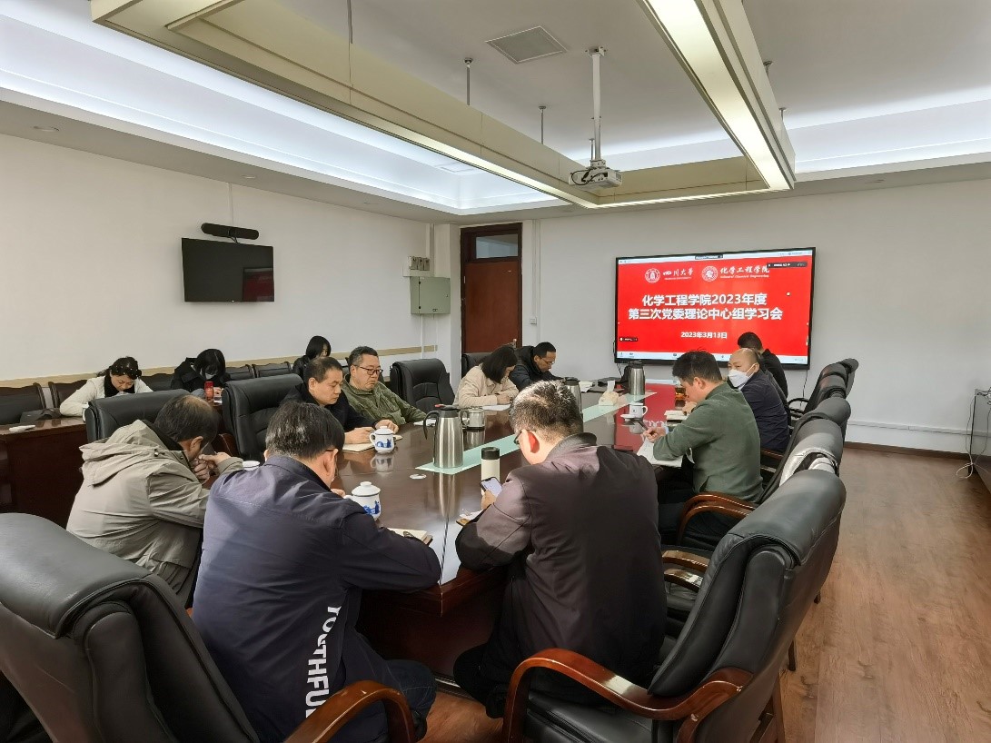 2023年3月13日上午,化学工程学院党委理论学习中心组在望江校区化工楼235会议室召开学习会。学院全体领导班子成员、党委委员、工会主席、专职组织员、系(基地、中心)主任、院长助理和科级干部等参加会议。会议由党委书记李天友主持。