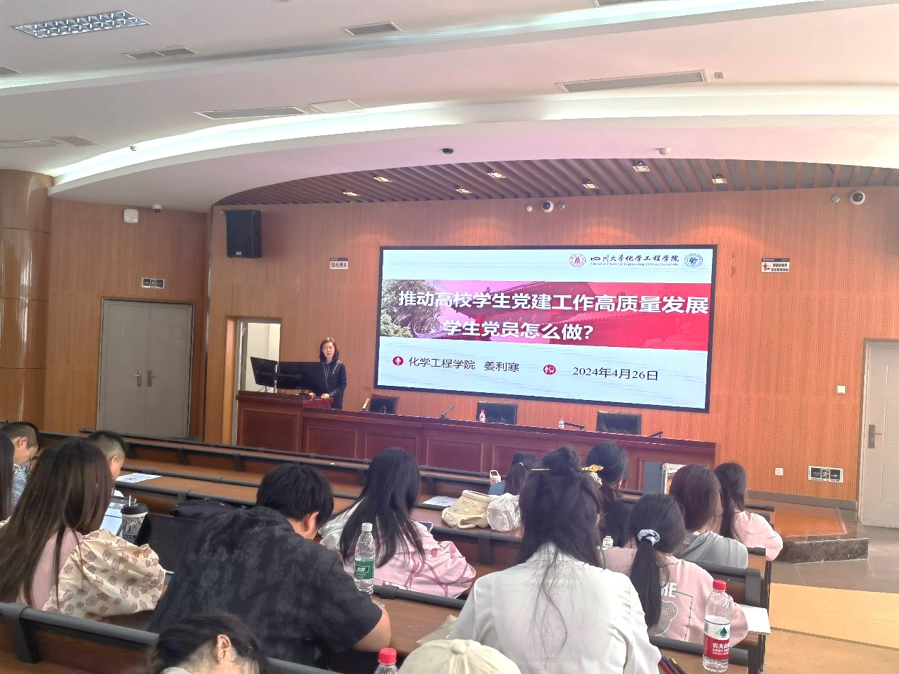 为深入学习习近平新时代中国特色社会主义思想,贯彻落实中央《党史学习教育工作条例》和学校党委党纪学习教育工作部署,强化“三个一流”创建活动,持续加强学生党员教育培训, 4月26日,化学工程学院党委在望江校区研究生院2-101报告厅举办“求知”学堂2024年第一期培训班,开展党的历史、党的理论、党的纪律学习教育专题党课。学院学生党员300余人参加党课。党建科科长高敏主持培训活动。