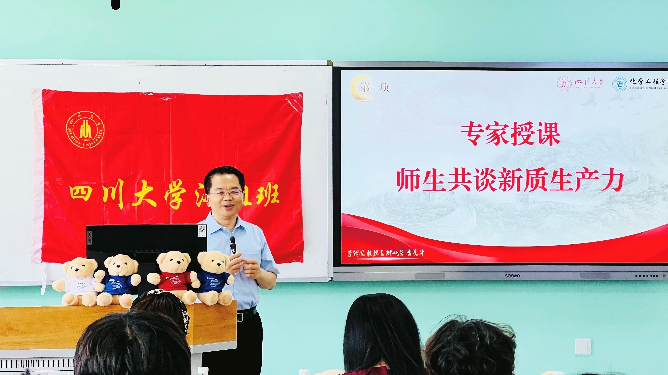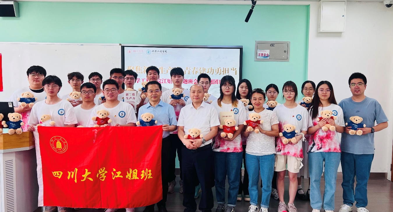 为深入学习贯彻习近平新时代中国特色社会主义思想,持续跟进学习习近平总书记近期重要讲话和重要文章精神,理解新质生产力的内涵特征和发展重点,5月21日下午14:00,化学工程学院2021级501班江姐班在江安校区一教D204顺利开展“聚焦新质生产力,青春建功勇担当”主题班会暨主题团日活动。到场嘉宾有四川大学副校长、化学工程学院江姐班班主任褚良银老师,化学工程学院党委书记李天友老师、副院长谢锐老师以及辅导员李珍珍老师和付率老师。活动由江姐班班长张益凡主持,江姐班全体同学参与。