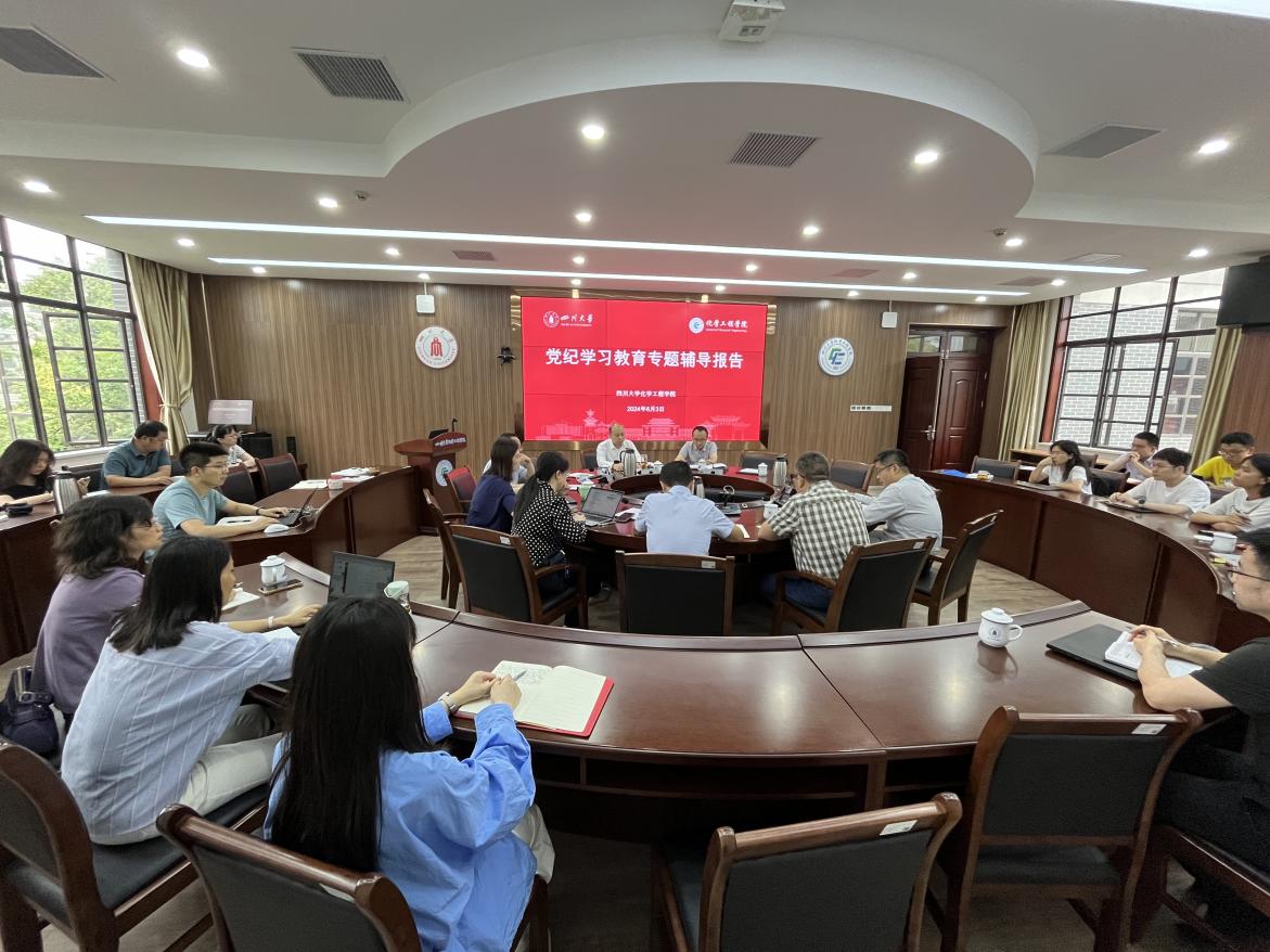 6月3日,学院在望江校区化工学院312会议室组织召开党纪学习教育专题辅导报告会。学校校刊编辑部主任罗云丹到会指导,学院全体党员领导班子、两委委员、工会主席、专职组织员、系主任、科级干部、院长助理和全体党支部书记参加会议。学院党委副书记兼纪委书记李德富主持会议。