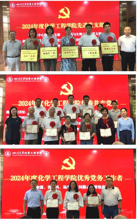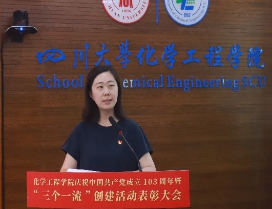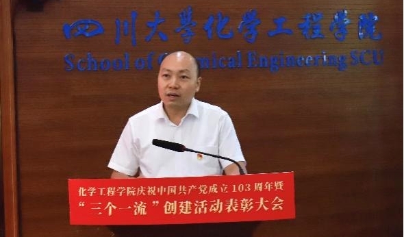 盛夏七月,温风初起荷花香;党旗飘飘,已至一百余三载。2024年7月1日下午,四川大学化学工程学院庆祝中国共产党成立103周年暨“三个一流”创建活动表彰大会于望江校区正行楼313报告厅隆重举行。四川大学杰出教授钟本和、院党委书记李天友、党委副书记姜利寒、副院长唐盛伟、副院长谢锐、工会主席穆畅道、专职组织员陈晓东及全体教职工党员、学生党员代表等共计180余人参加此次表彰会。院党委副书记兼纪委书记李德富主持会议。