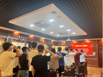 最后,邓松同志带领全体党员重温入党誓词,希望每位党员同志都能牢记入党誓词,经常加以对照,永葆初心,坚定不移,终身不渝。