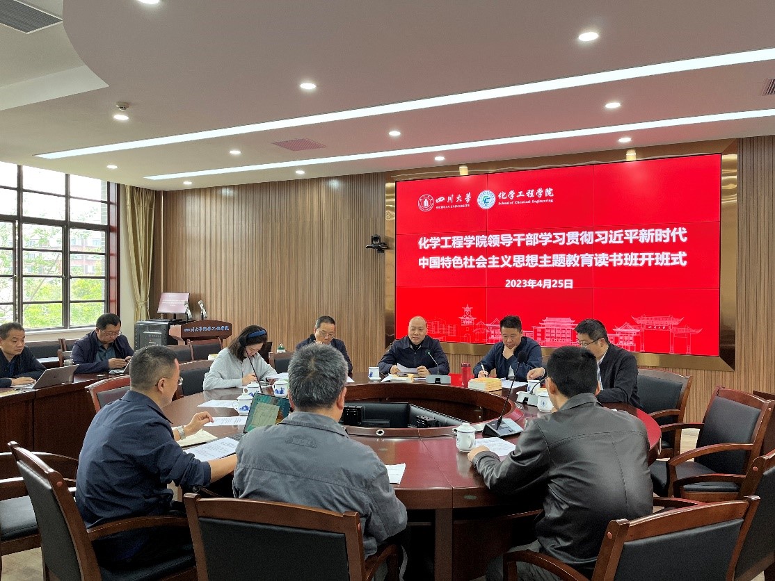 4月25日,化学工程学院领导干部学习贯彻习近平新时代中国特色社会主义思想主题教育读书班开班式在望江校区化工学院312会议室举行。学院党委书记李天友、院长郭孝东等全体院领导,学院两委委员,全体科级干部和党支部书记代表等参加。