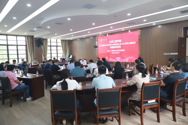 2023年5月5日下午,化学工程学院在望江校区正行楼312报告厅组织召开学习贯彻习近平新时代中国特色社会主义思想主题教育专题辅导报告。学校党的二十大精神宣讲团成员、校教务处处长党跃武教授主讲。报告会由学院党委书记李天友主持,学院全体领导班子成员、专职组织员、工会主席、两委委员、系级单位主任、副主任、院长助理、各教研室主任、全体科级干部、党支部书记等参加。
