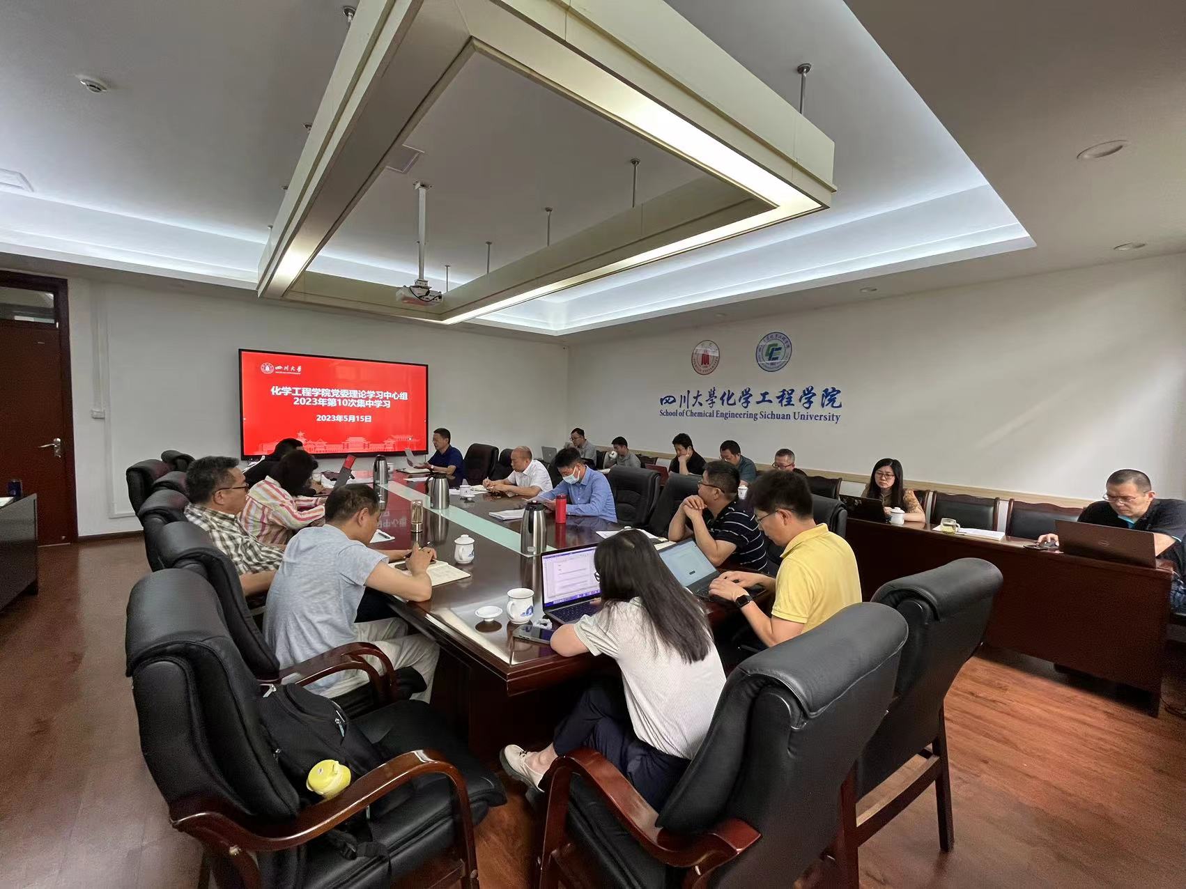 2023年5月15日上午,化学工程学院党委理论学习中心组在望江校区化工楼235会议室召开学习会,及时传达学习习近平总书记最新重要讲话精神和中央重要会议精神。学院全体领导班子成员、党委委员、工会主席、专职组织员、系(基地、中心)主任、院长助理和科级干部等参加会议。会议由党委书记李天友主持。