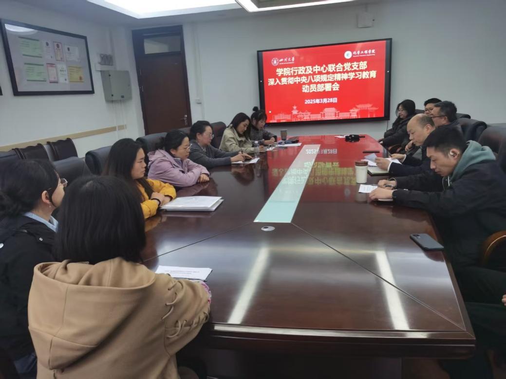 2025年3月28日下午,化学工程学院全体行政老师和工程实验教学中心全体实验技术人员在望江校区化工学院235会议室开展了政治学习暨贯彻落实中央八项规定精神学习教育动员部署会。学院党委书记李天友参加学习会。本次会议由高敏同志主持。