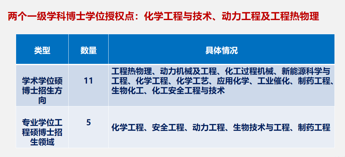 四川大学化学工程学院是国家布局在西部的重要化工高等教育基地和化工人才培养基地。学院的研究生教育历史悠久、学术沉淀深厚,具备完整的硕博士研究生培养体系。拥有先进和完备的研究条件与设施,拥有10个国家和省部级学科平台,科研项目和科研经费充足。师资力量雄厚,拥有国家级和省部级各类人才和教学名师共88人次。学院拥有国家重点学科“化学工程”,“化学工程与技术”一级学科博士学位授权点和博士后科研流动站。在化学工程与技术一级学科博士学位授权点和化工过程机械二级学科博士学位授权点招收和培养学术型硕博士研究生,在材料与化工、资源与环境、能源动力、生物与医药四个领域招收专业型硕博士研究生。截至2024年12月,在读研究生规模达到900余人,教育教学水平卓著。