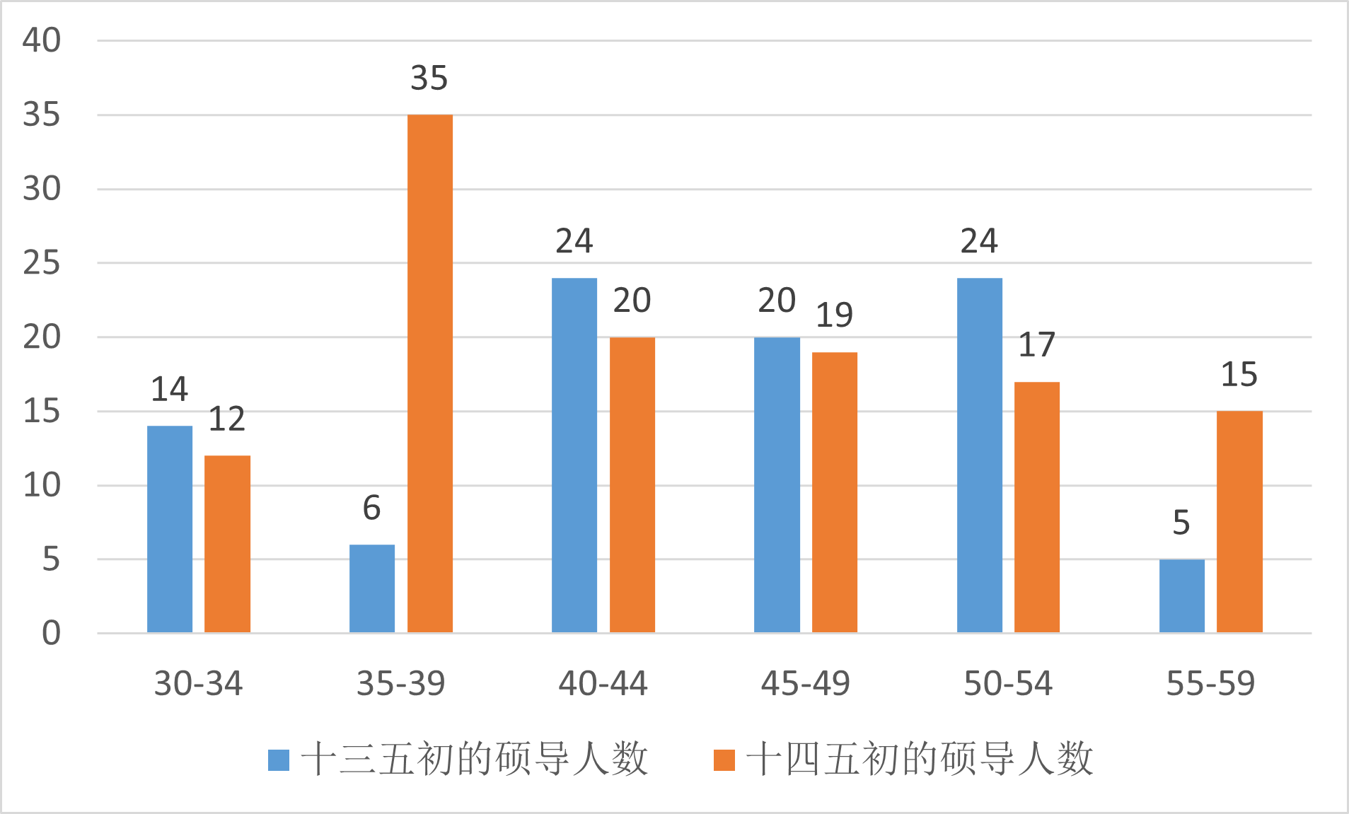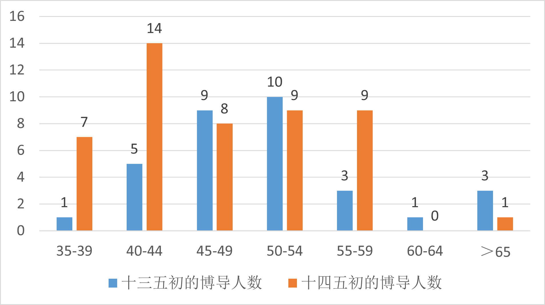 图2 “十三五”和“十四五”初期的博士生导师年龄结构分布