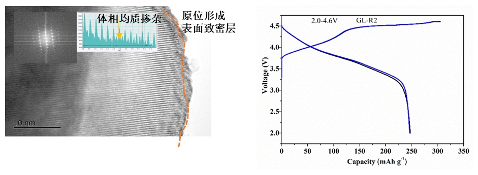 项目团队针对富锂材料的高温循环和产气的技术难题,采用平衡晶面调控技术和原位掺杂技术,率先研制出中压高温型富锂锰基材料,全电池高温循环寿命提高一倍以上,高温存储产气量下降50%,有利支撑中国有研能源材料的战略布局。