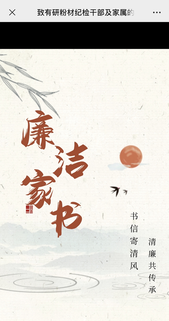 为强化对纪检干部“八小时外”关心关怀和监督提醒,有研粉材纪委发放给公司纪检干部及家属一封廉洁家书,进一步教育党员干部廉洁用权、廉洁修身、廉洁齐家,同时倡导家属当好“廉内助”,发挥好家庭助学助廉作用,共同营造向上向善的家庭文明新风尚。
