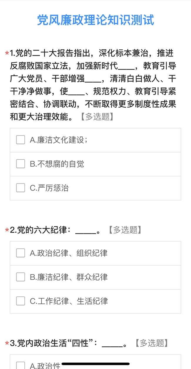 为检验和提升公司党风廉政建设宣传教育成效,真实了解党员干部对公司党风廉政建设基础知识的学习情况,公司纪委组织开展全面从严治党与党风廉政建设应知应会知识测试,以考促学、以考促廉,通过学习强化党风廉政意识,引导党员干部增强纪律规矩意识和廉洁自律意识,提高拒腐防变能力。