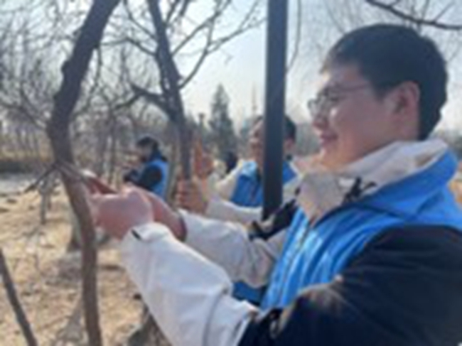 有研稀土团支部开展“学雷锋月——林下抚育尽责”主题活动,赴北京市顺义区马坡城市森林公园对园区苗木进行围堰、浇水,开展落叶清理等工作。