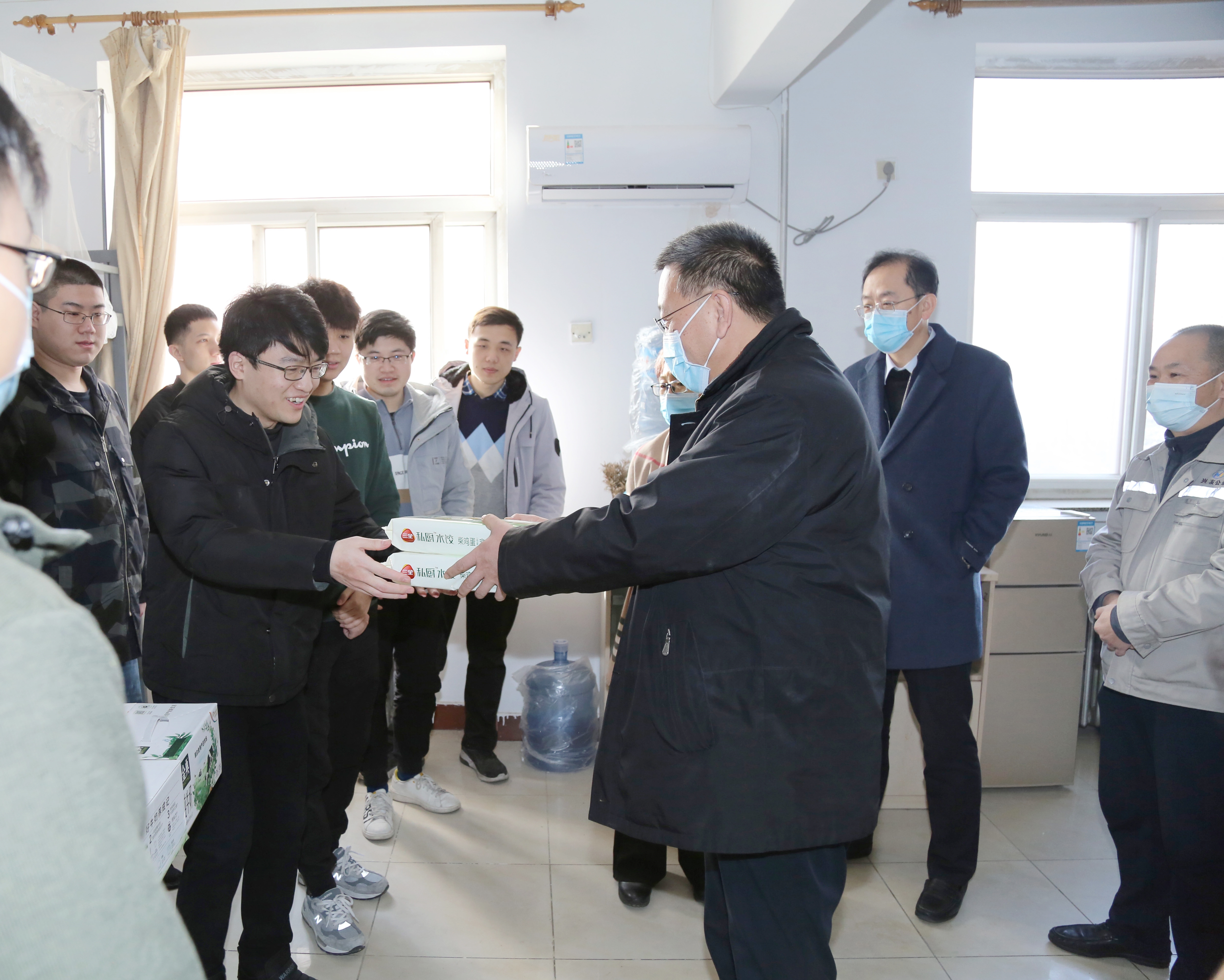 1月29日,正值辛丑牛年腊月廿七,有研集团党委副书记、总经理熊柏青到研究生宿舍走访慰问,看望因科研学习和疫情防控等原因留院过年的研究生,为同学们送去了新春的祝福。