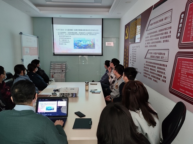 3月30日,国联研究院团支部组织召开团员大会,开展“学党史、强信念、跟党走”主题团课,国联研究院团支部书记方彦彦带领广大团员青年集体学习《中国共产党的精神谱系(一)》,巩固深化党史学习成果,引导团员青年汲取红色精神力量。