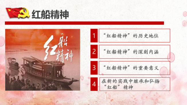 中国共产党成立以来,历经无数艰难坎坷的革命斗争,涌现出无数彪炳史册的伟大成就,所形成的红色精神串联成一幅完整的精神谱系。本次团课,方彦彦重点讲述红船精神、井冈山精神和苏区精神,深入解读精神内涵。