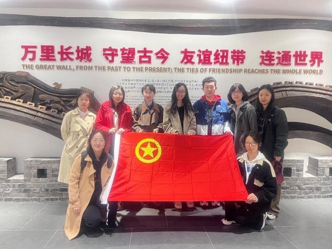植树后,大家来到了慕田峪长城红馆,红馆内展出的展品是从数百件馆藏中精心挑选的不同历史时期(土地革命战争时期,抗日战争时期,解放战争时期,抗美援朝战争时期)在部队使用过的实物,通过参观及馆内讲解,了解慕田峪长城修复历史,深入学习党的百年发展历程及英雄精神,激发青年团员们铭记历史、不忘初心、牢记使命、砥砺前行的强大动力。在红馆内,团员们还面向团旗庄严宣誓,重温入团誓词。