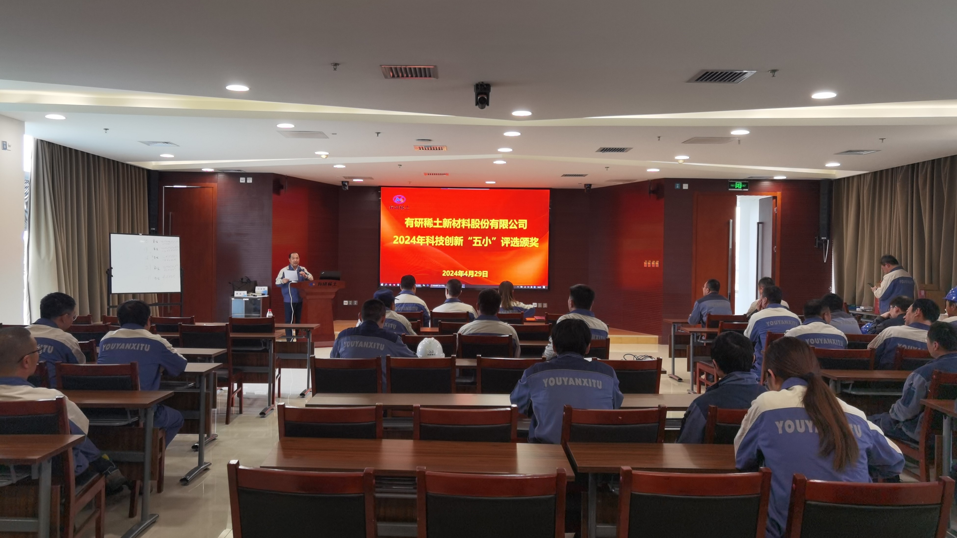 4月29日,有研稀土在燕郊基地召开了科技创新“五小”表彰大会,公司领导班子成员、各部门负责人及获奖人员50余人参加了会议。