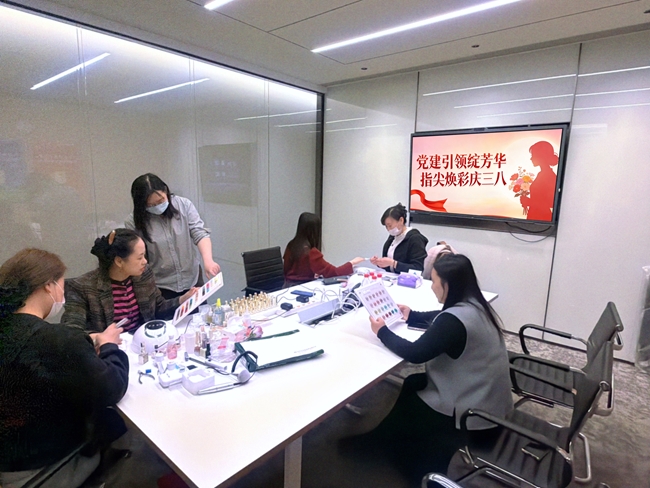 有研新材本部工会开展“党建引领绽芳华,指尖焕彩庆三八”主题活动,组织女职工学习优秀女性先进事迹,感悟榜样力量,汲取奋进精神;开展美甲体验,在温馨愉悦的氛围中舒缓身心、展现自信风采。