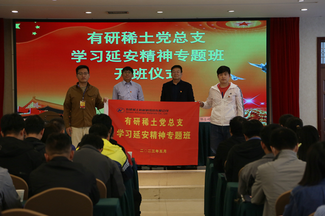 开班仪式上,延安市委党校原副校长韩东峰介绍了延安的历史背景、地域资源和发展现状。有研稀土党总支书记、总经理刘荣辉做开班动员讲话。他强调,全党正在开展学习贯彻习近平新时代中国特色社会主义思想主题教育,我们要坚定正确政治方向,深入学习贯彻习近平总书记关于稀土产业发展的重要指示精神,进一步把握新时代高质量发展的实践要求,努力在延安精神中汲取奋进之力,为加快打造稀土原创技术策源地、建设稀土材料创新高地、引领稀土行业科技发展贡献力量。