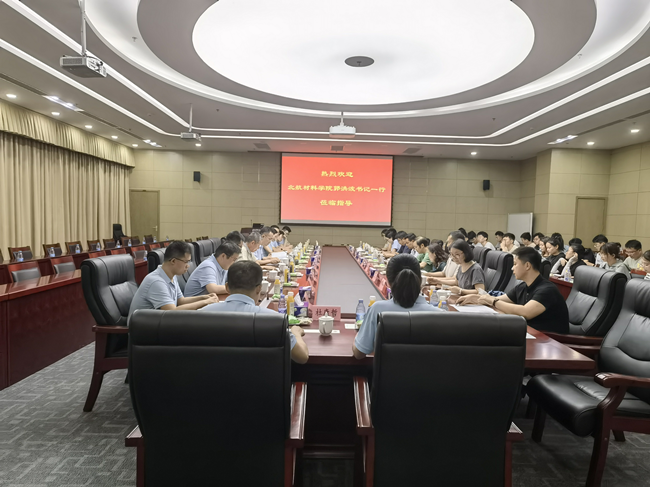 座谈会上,樊建中对郭洪波一行的到访表示热烈欢迎,并介绍了有研复材科技创新驱动高质量发展和人才培养情况。王敬民代表材料学院介绍了学院整体情况。双方围绕党建共建合作方式、人才培养和输送等问题展开了热烈讨论。